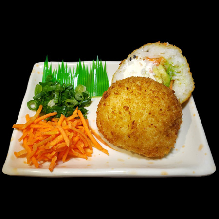 Un ebi roll, un kanikama, uno de los dos a escoger Empanizado y la mitad teriyaki (De 3 a 4 personas)