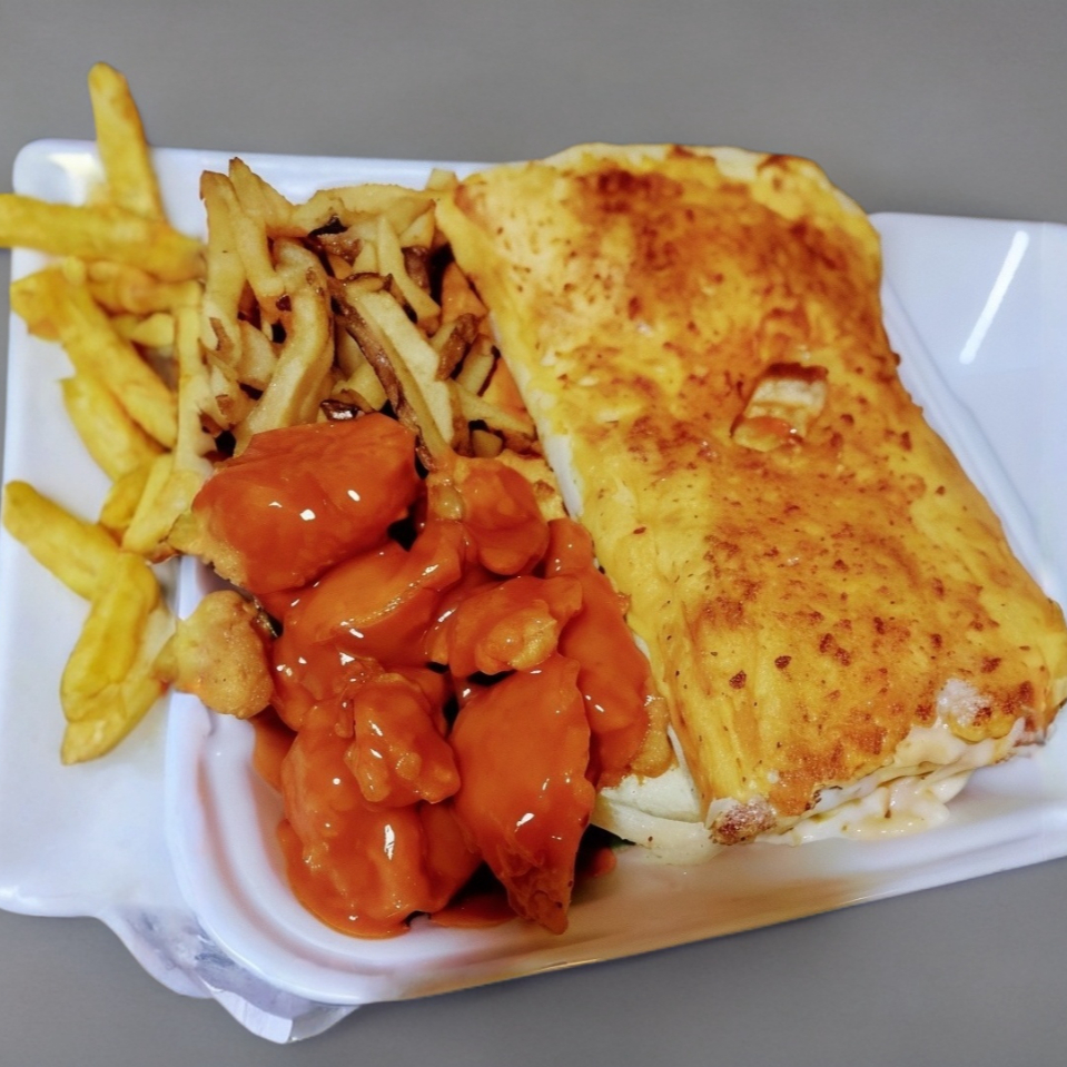 CHICKEN PEPPERONI BAKE+ PAPAS FRITAS