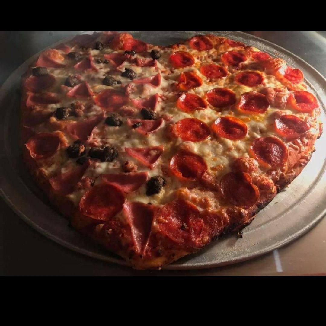 Pizza en forma de corazón de la especialidad que guste ya sea peperoni o carnivora.