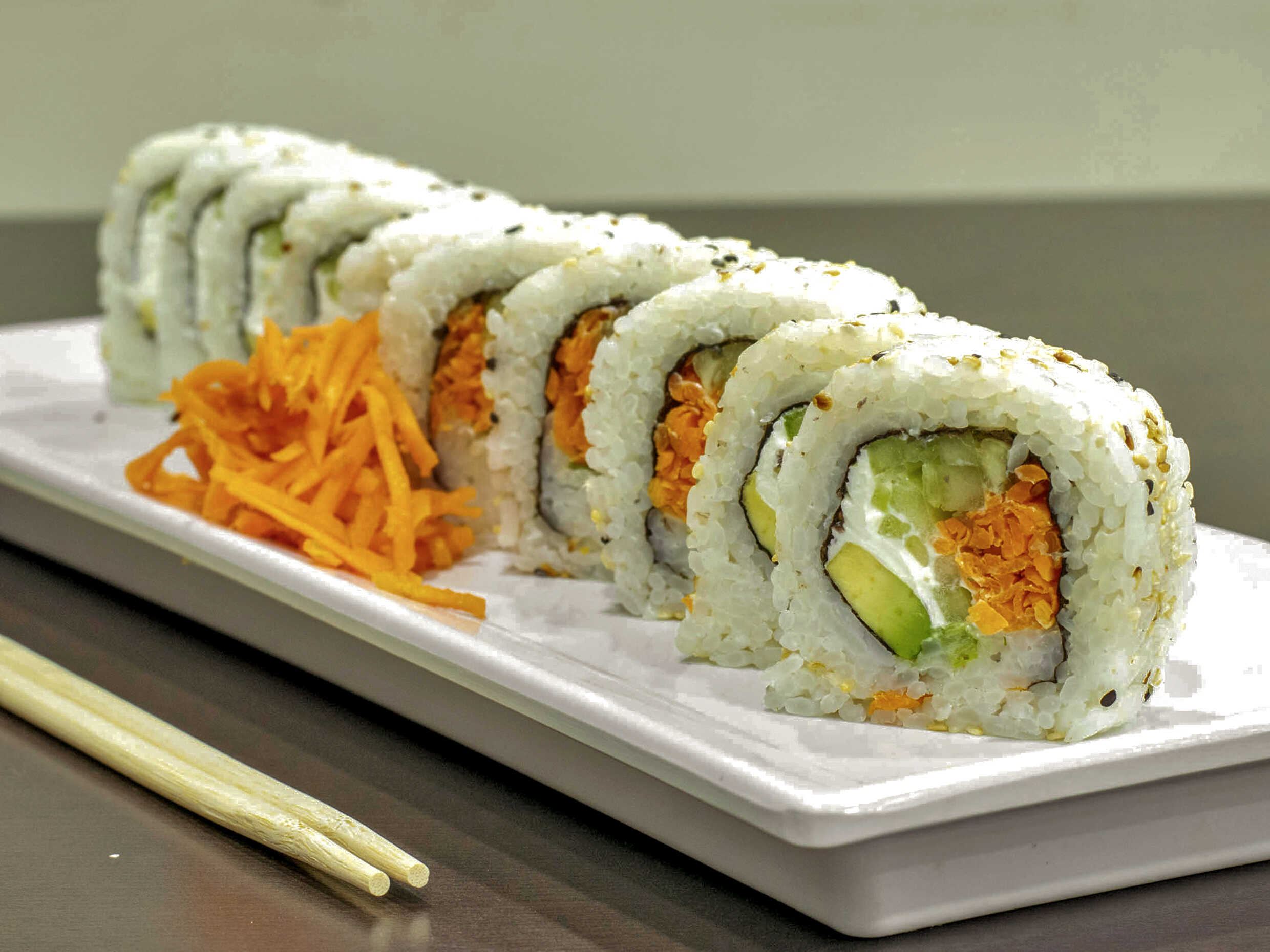 Philadelphia, aguacate, pepino, zanahoria y cebollín.