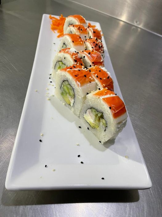 Pepino, aguacate, Philadelphia, surimi, tampico y salsa de anguila.