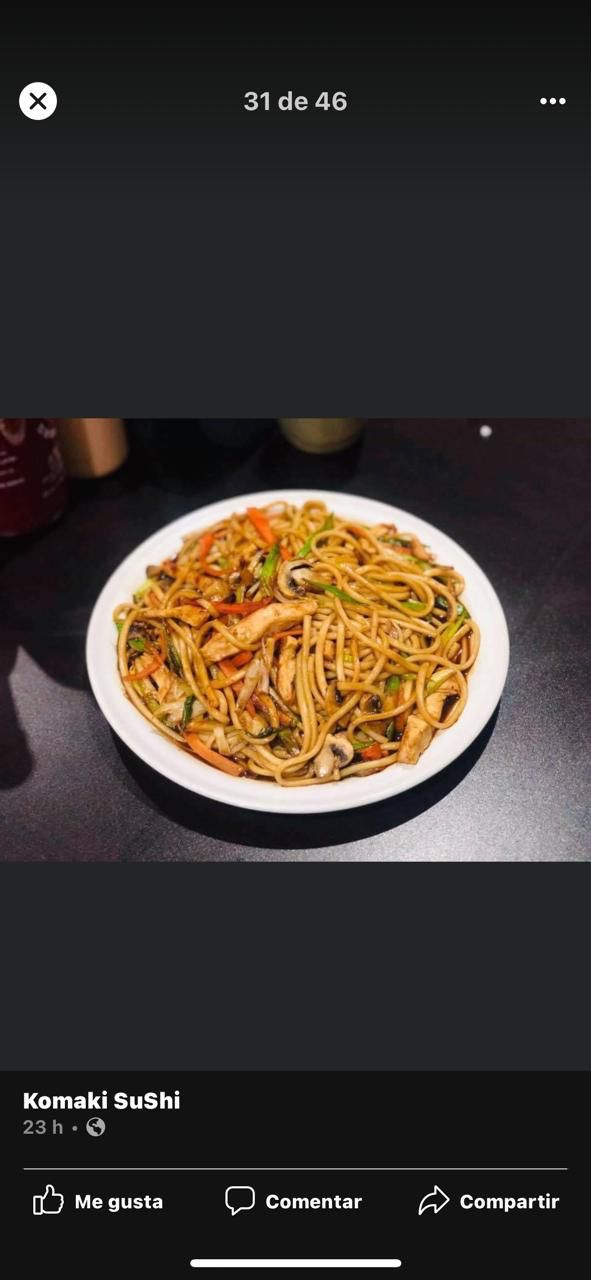 Pollo, cebollín, champiñon, zanahoria, pasta noodle y salsa yakisoba.