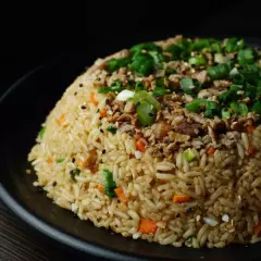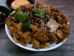Cocinado con chile morrón verde, cebolla y chile jalapeño, servido sobre una cama de arroz al vapor y cocinado con salsa teriyaki o salsa teriyaki spicy. Bañado con ajonjolí tostado y cebollín.