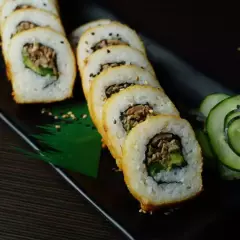 Camaron, carne de res, pepino, aguacate,empanizado
