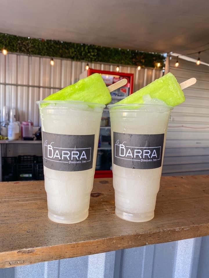 Limonada con cherry frappeada y paleta de hielo sabor limón.