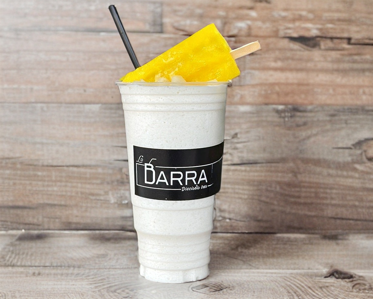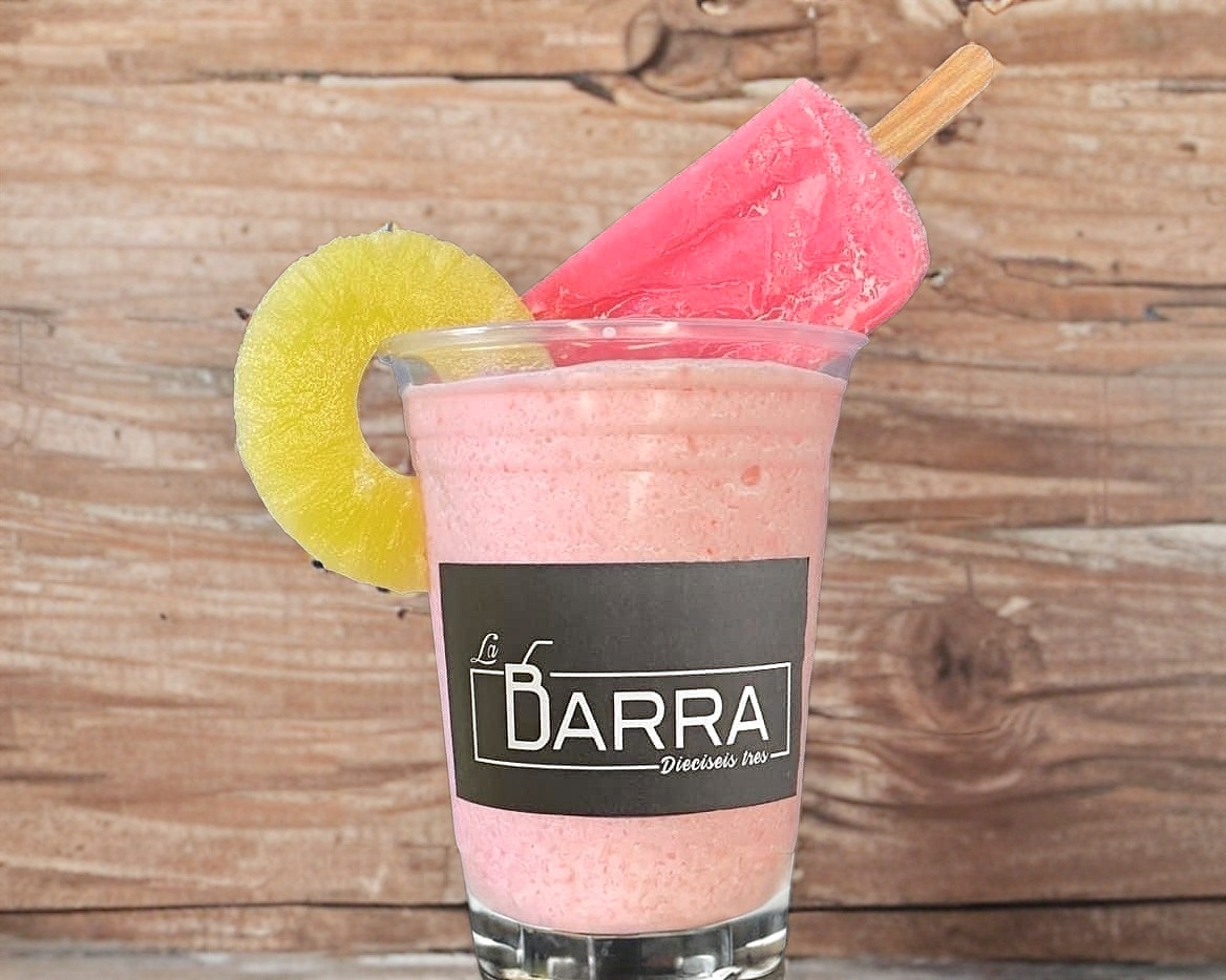 Piña colada con un toque de chery y paleta de hielo sabor fresa.