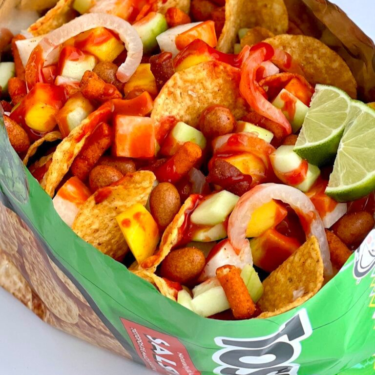 Sabritas de tu elección con nuestra deliciosa carne seca, pepino y salsa especial de la casa.
