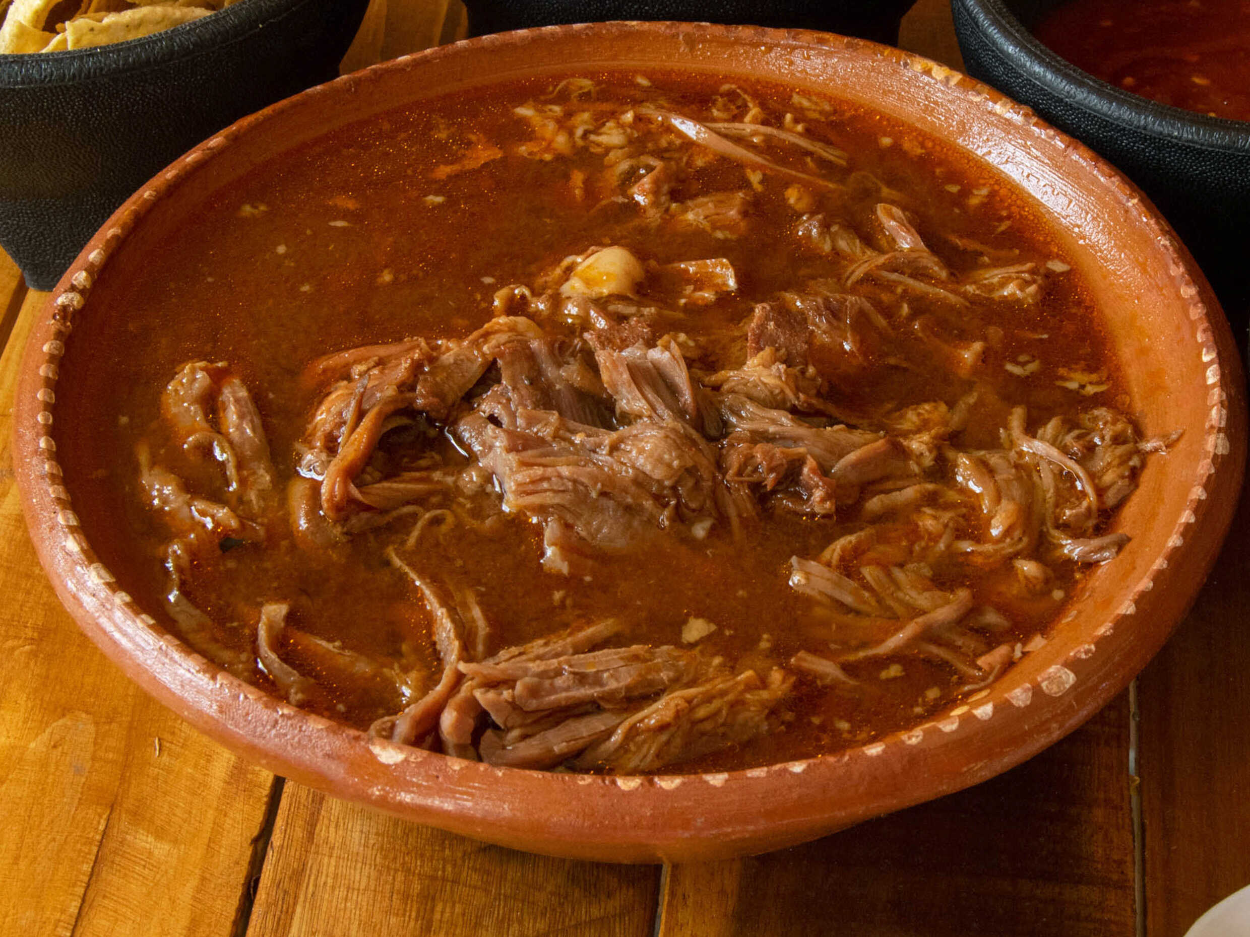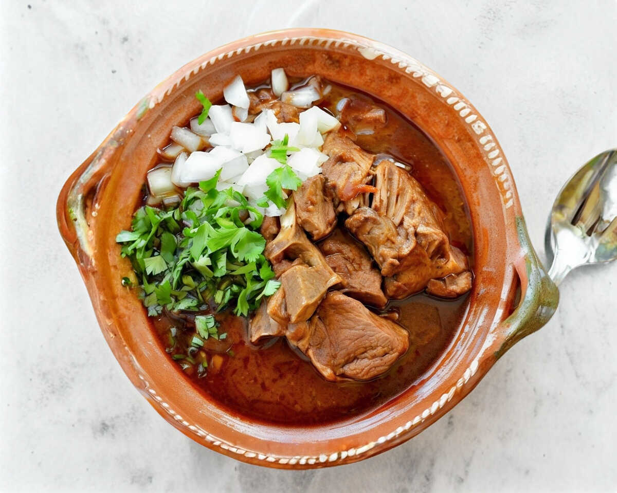 un cuartito de birria,4tortillas,bebida al gustosalsa,verdura y frijoles puercos