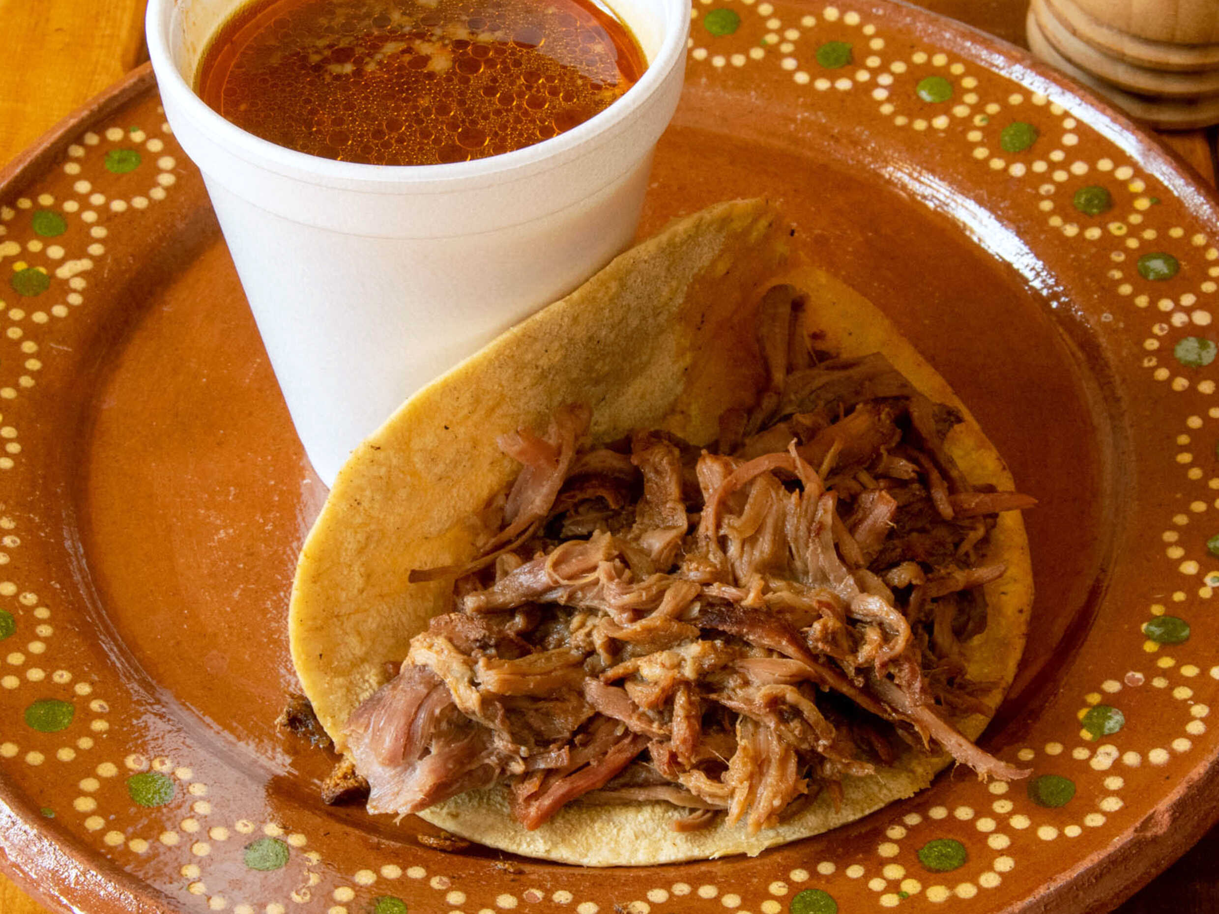 2 TACOS,con tortilla de maíz recién hecha,BEBIDA A TU GUSTO,VERDURA,SALSA,CONSOME Y FRIJOL PUERCO.