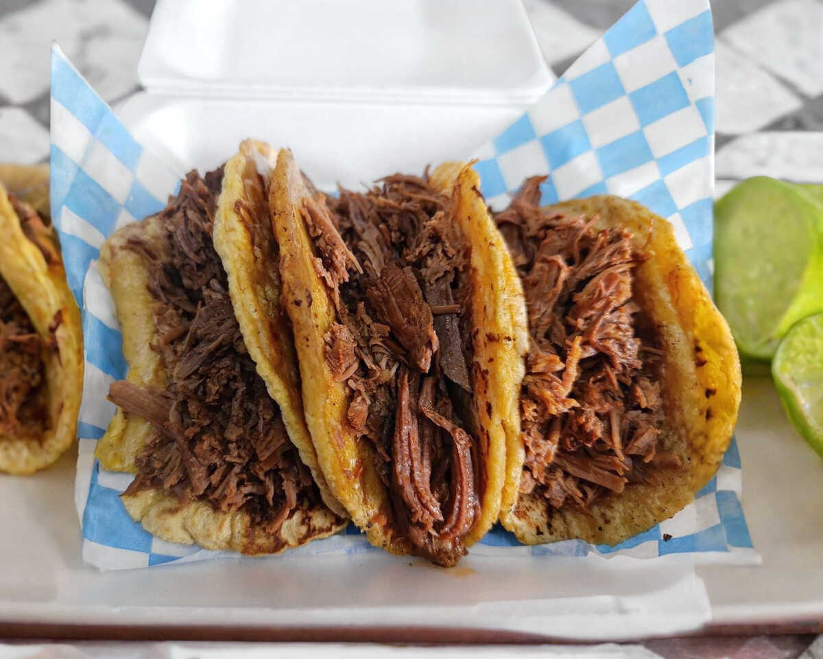 Tacos reportados!!con tortilla de maíz recién hecha, juguito,verdura,salsa,y limones
