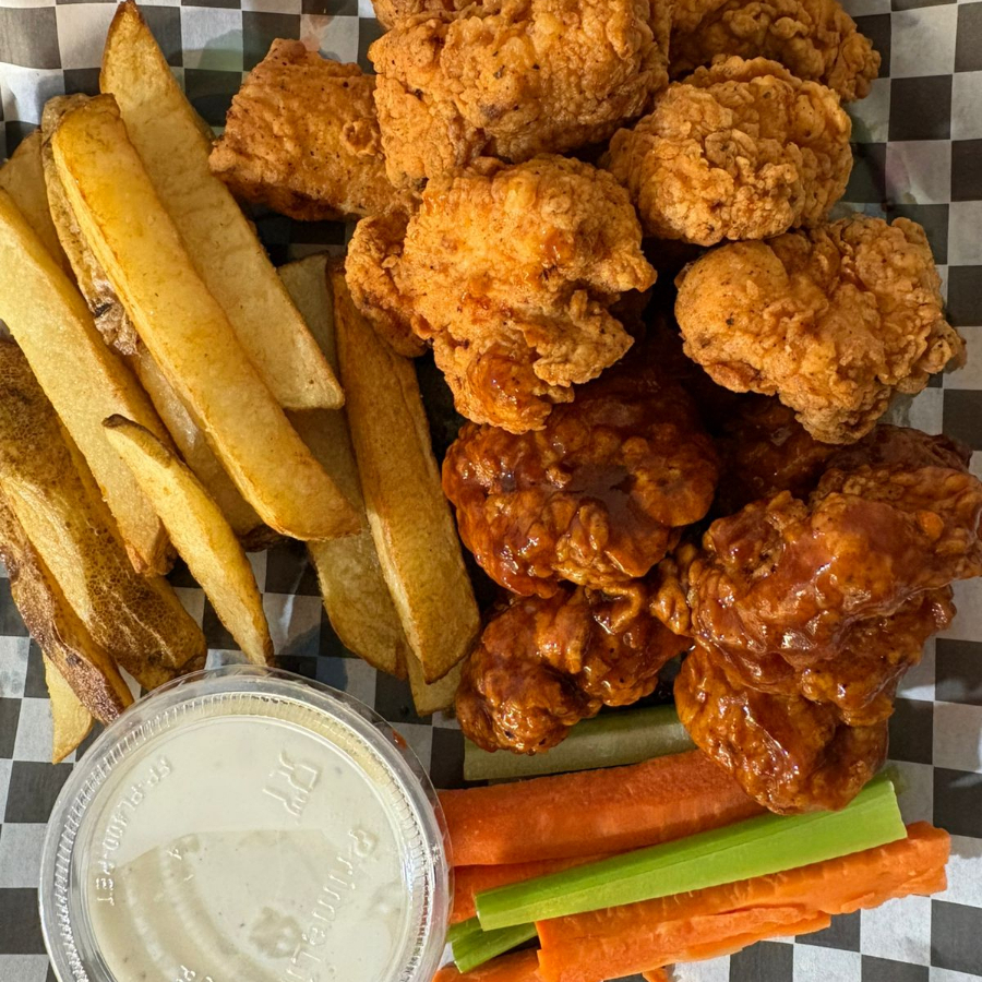 Deliciosas Boneless acompañadas con Aderezo Ranch , Vegetales y Papas