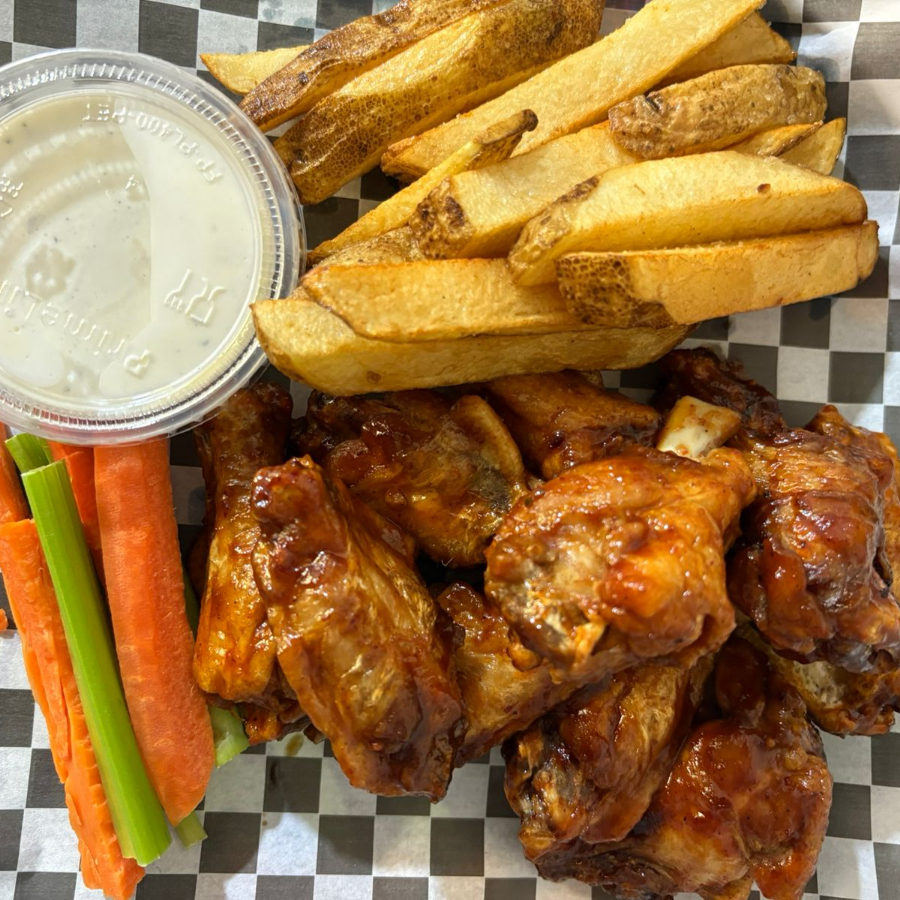 Deliciosas Alitas acompañadas con Aderezo Ranch , Vegetales Y Papas
