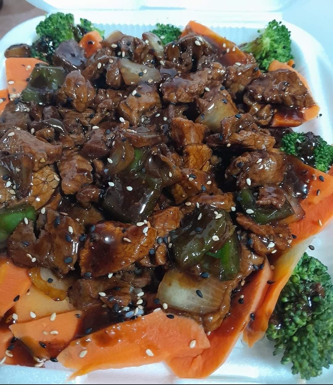 Morron,cebolla,zanahoria,brocoli bañado con salsa teriyaki de la casa para 2 personas