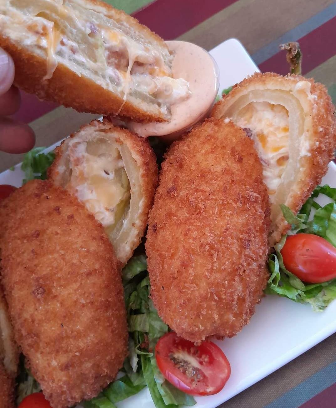 Camaron grande relleno de queso crema y empanizado