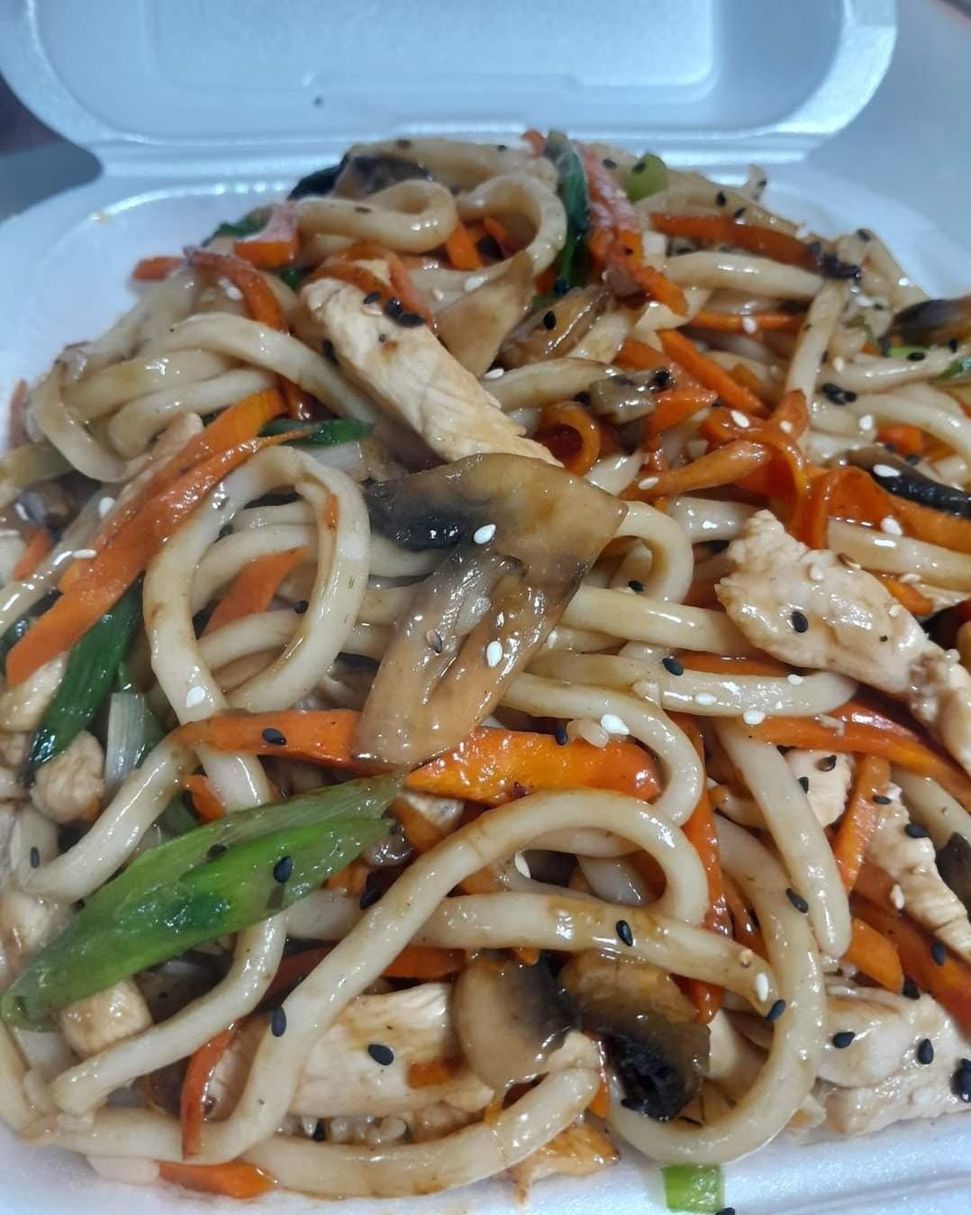 Para 5 Personas.Pollo,morron,cebolla,zanahoria y brócoli bañado con salsa teriyaki de la casa.