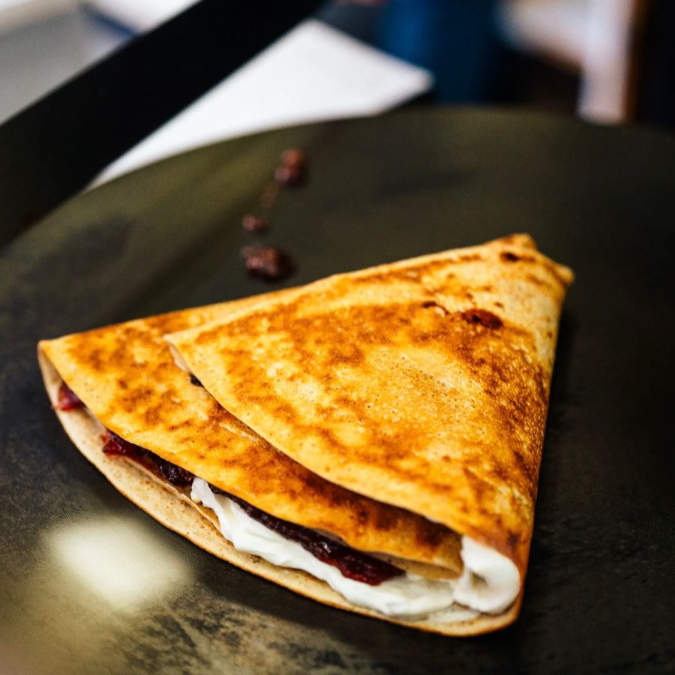 CREPA MERMELADA FRESA,PHILADELPHIA Y PLATANO