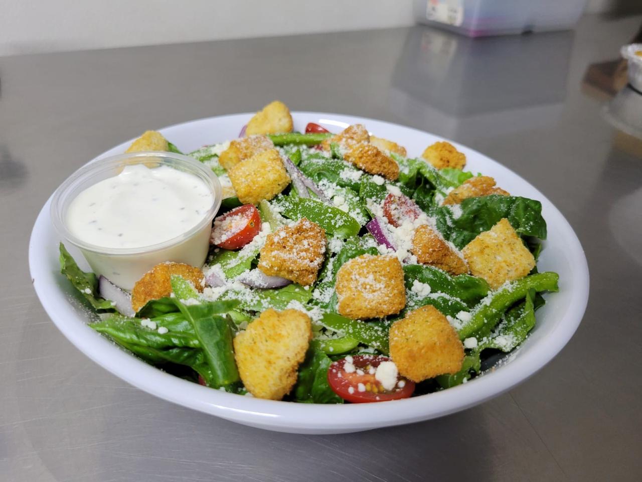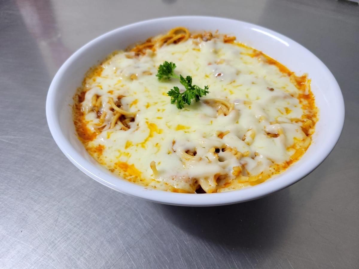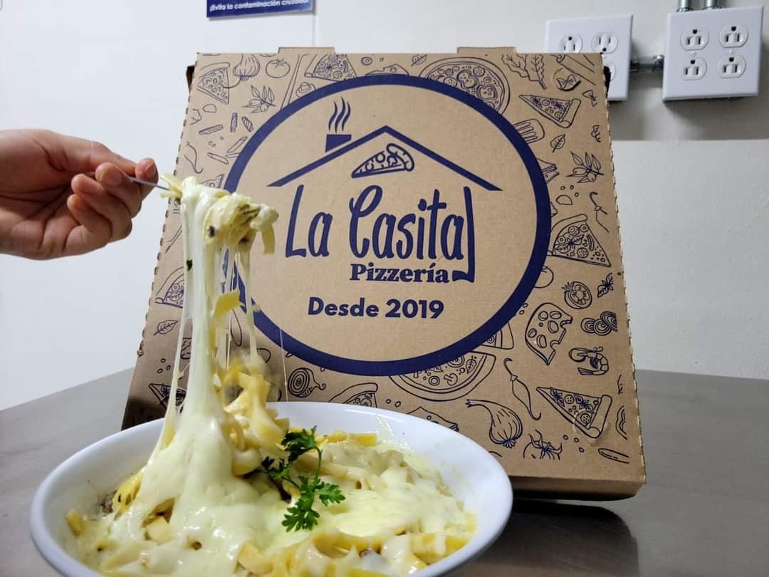 Mozzarella, queso crema y queso parmesano, 6 rebanadas.