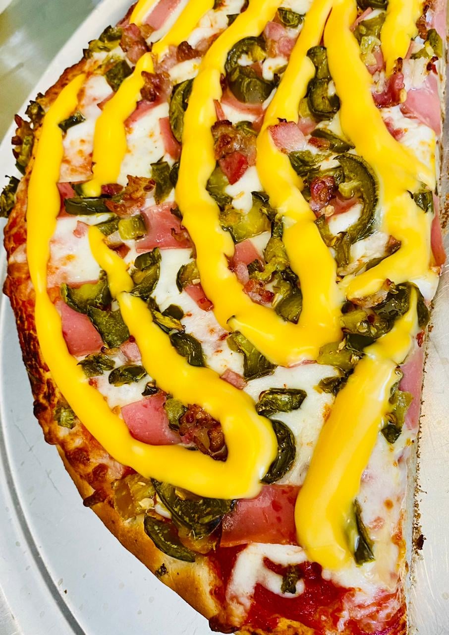 Jamón, chorizo, jalapeño, frijol y tocino, 6 rebanadas.