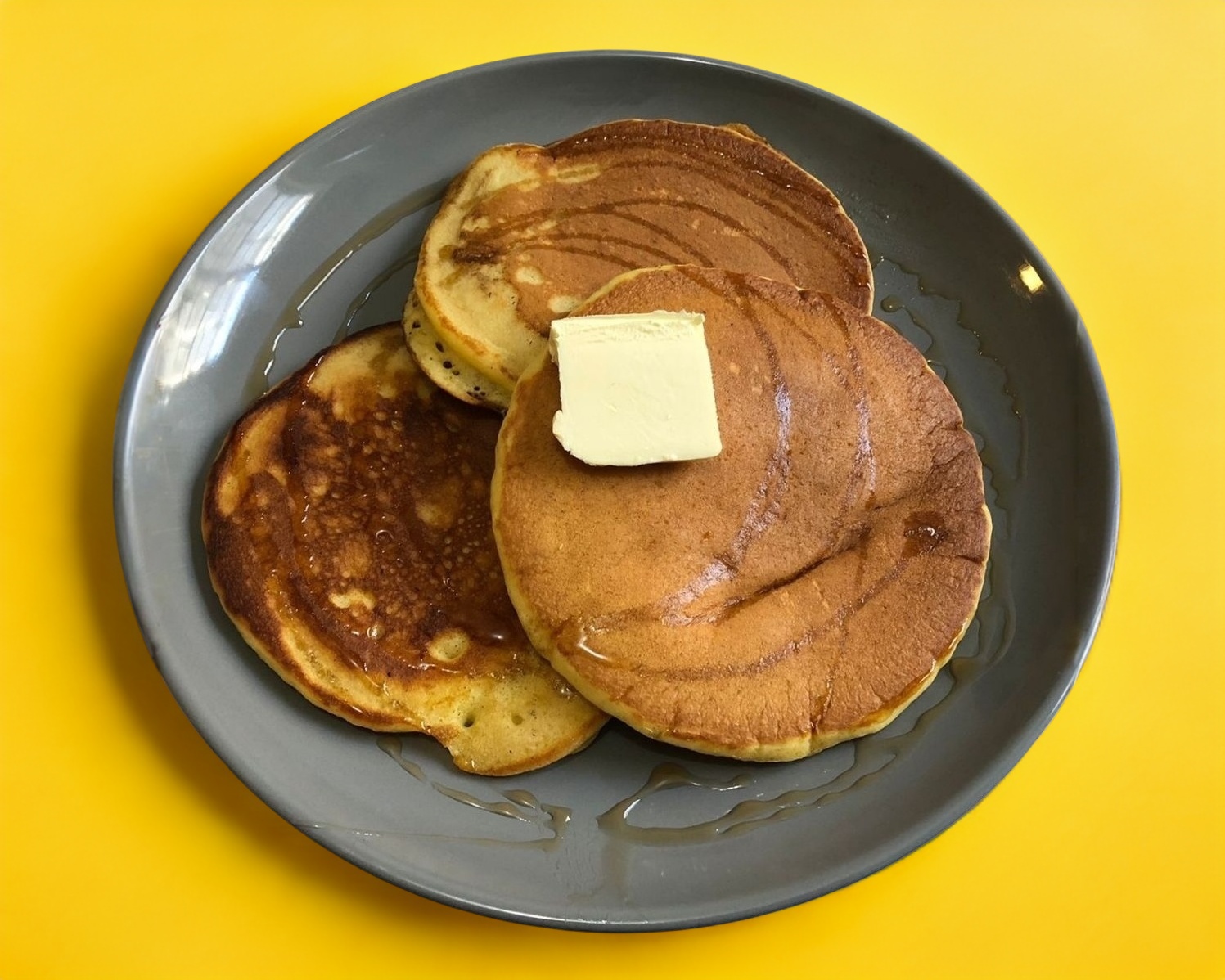 3 piezas de hotcakes con miel y mantequilla