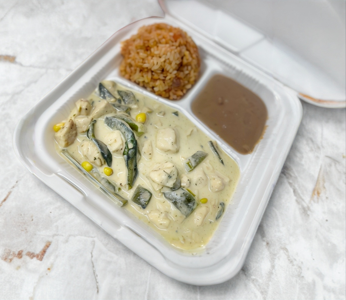 Rajas poblanas con pechuga 3 🧀, (inclu/bebida) ✅