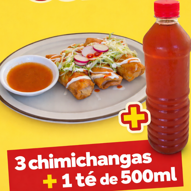 3 Chimichangas + 1 Te 500ml