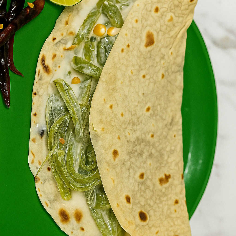 Enchilada de carne y queso, con lechuga, tomate, aguacate y queso.