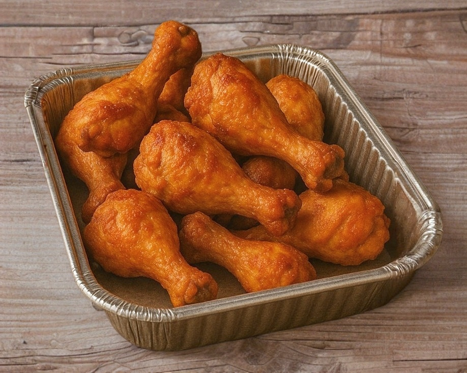 3 piezas de pollito al disco, papas fritas, tortillas, salsas y chile frito