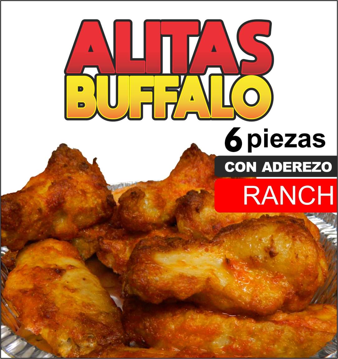 Alitas Estilo Buffalo 6 piezas, acompañados con aderezo ranch.