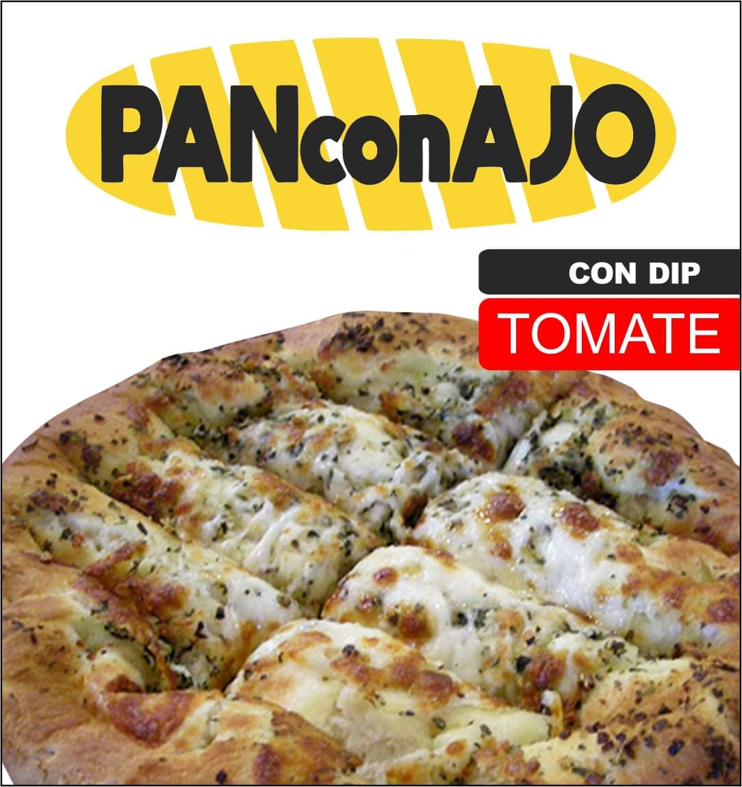 Pan horneado con base de mantequilla con queso fundido con especias mediterraneas, acompañado con Dip de salsa pizza.