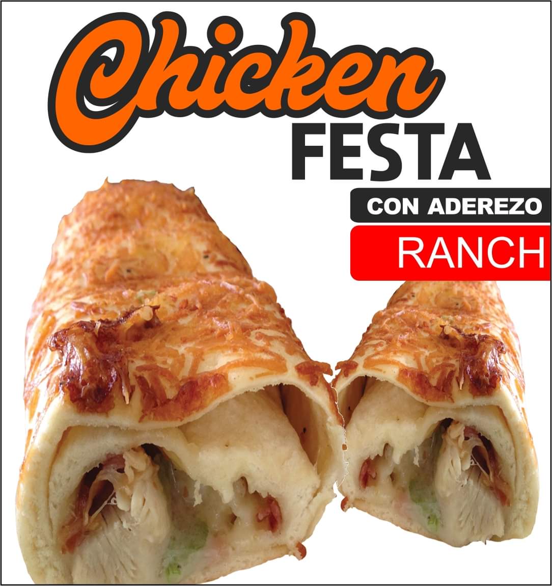 Rico pan horneado con pollo en queso fundido con tocino y morrón. Acompañado con aderezo ranch.