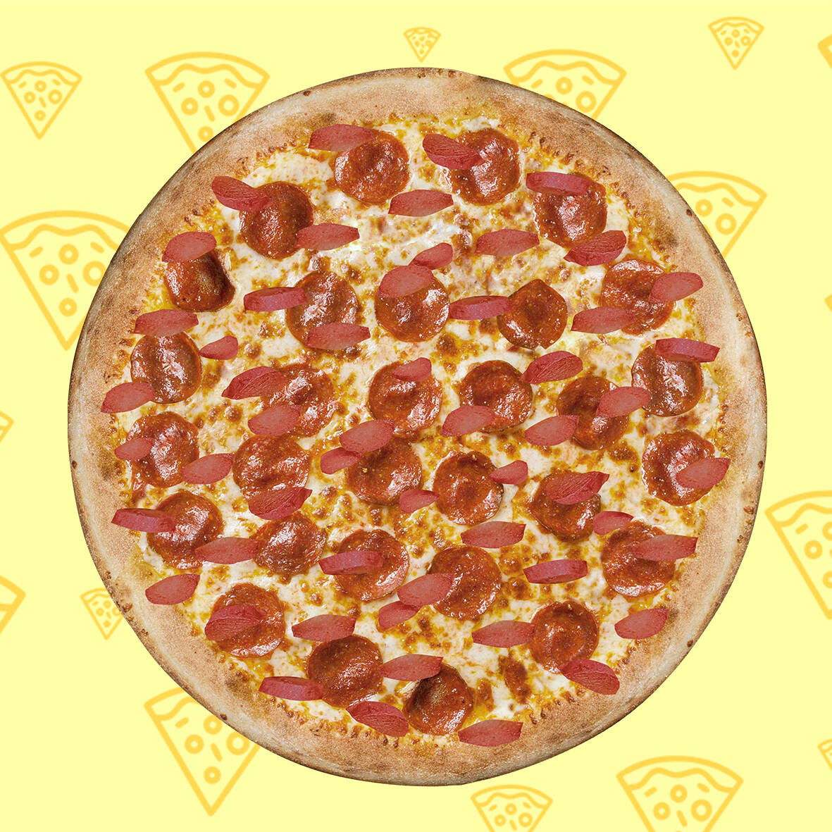 Pepperoni, Jamón, Salchicha Italiana, Champiñón, Aceituna Negra, Morrón y Extra Queso.