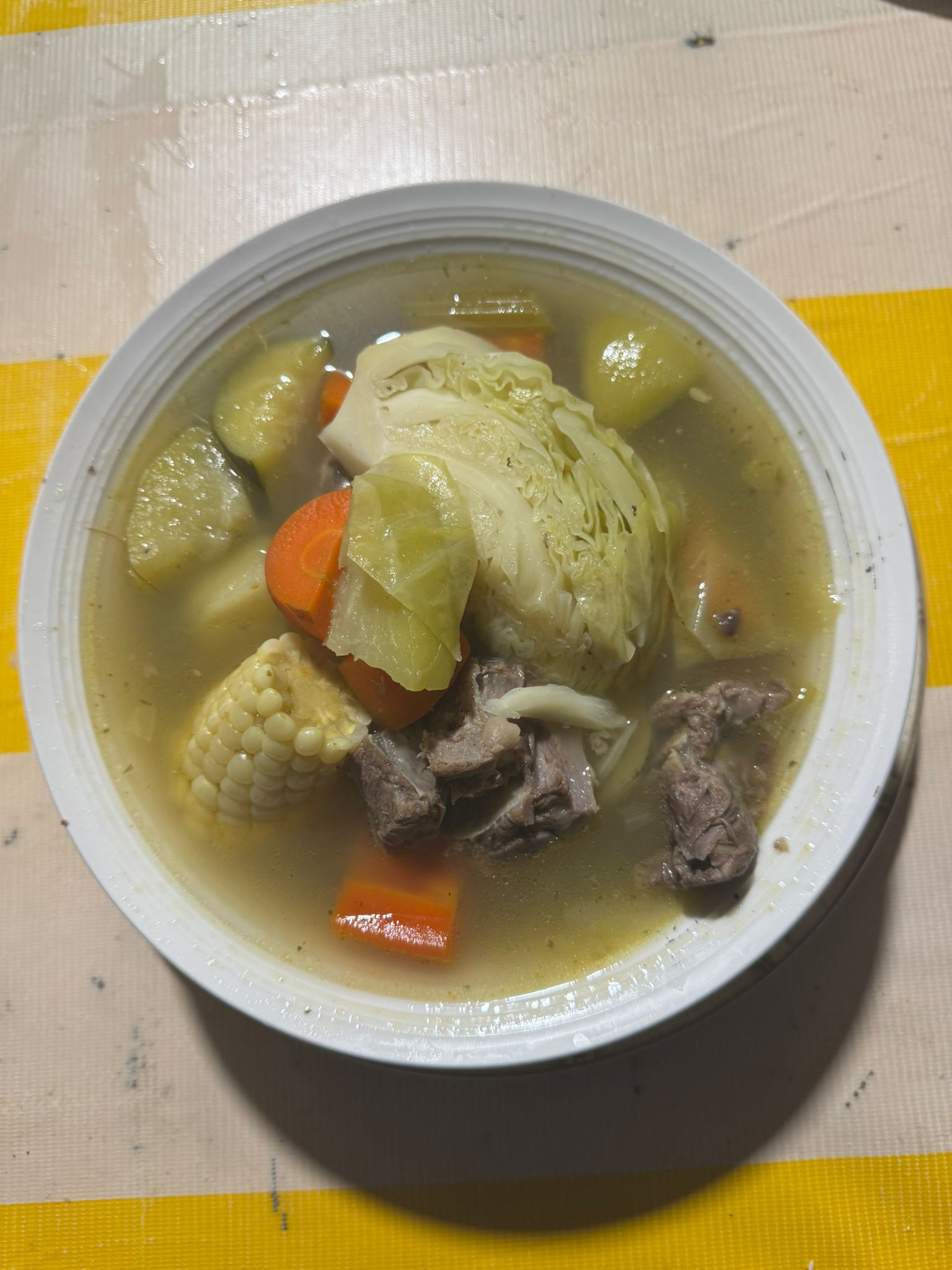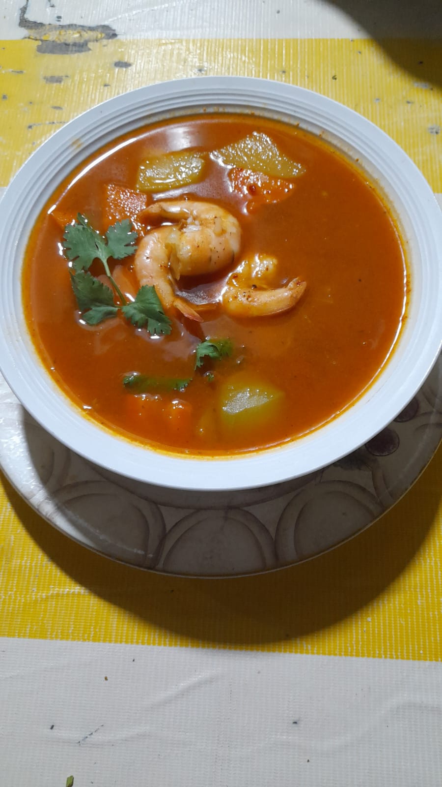 Un caldo estilo Guerrero, preparado con camarón y verduras.