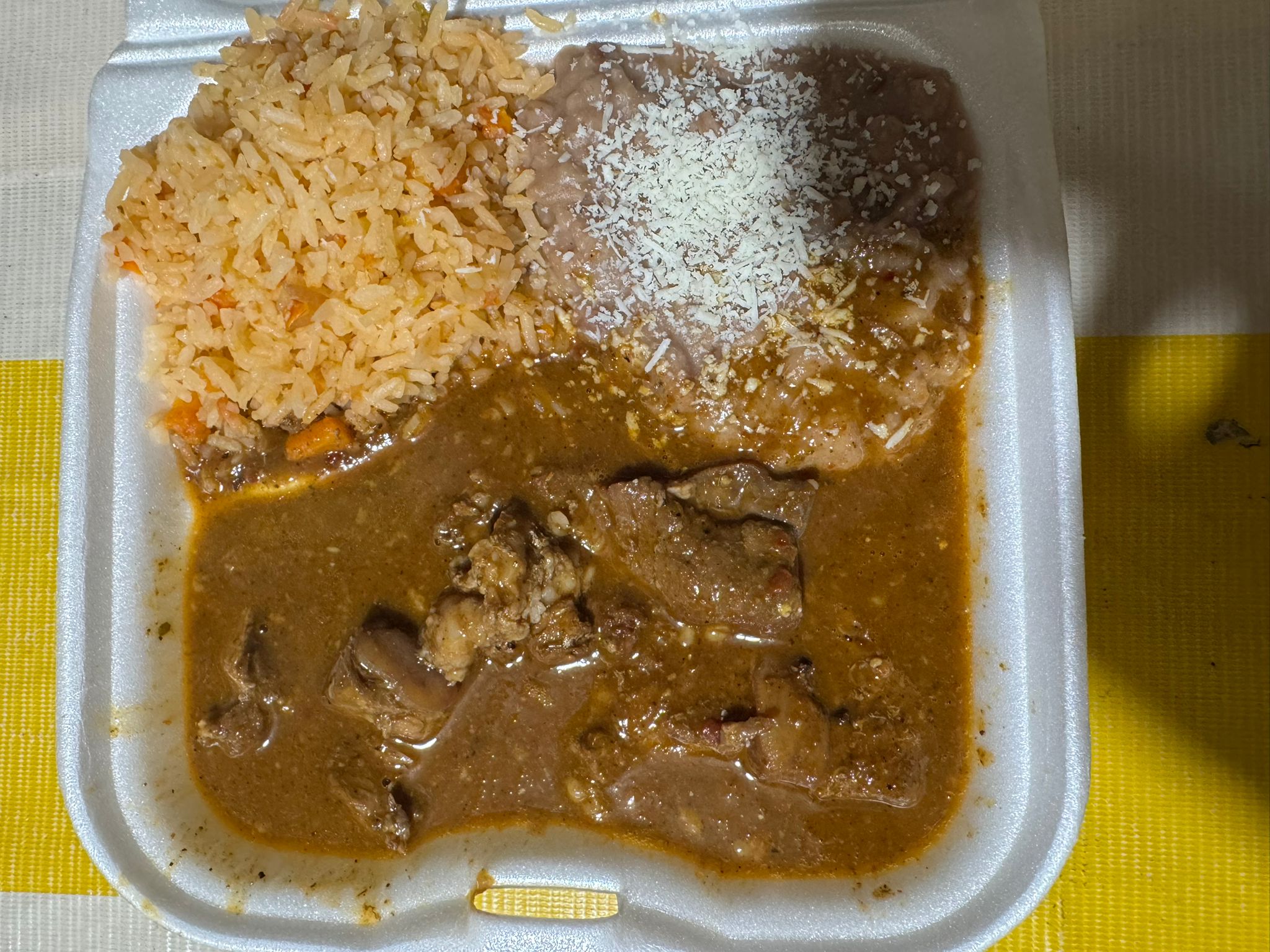 Jugosa costilla de puerco bañada en una deliciosa salsa de chile morita.