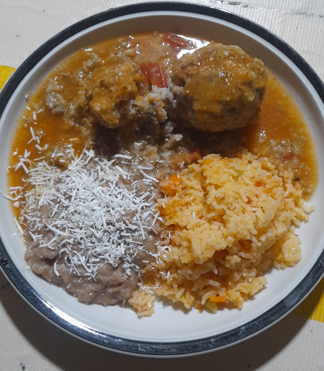 Tiernas albóndigas de carne en una salsa de jitomate casera.