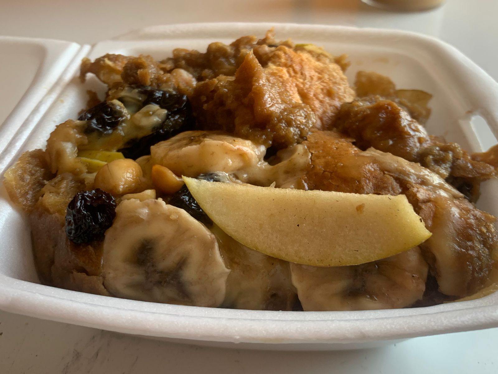 Rico y delicioso y crujiente pan bañado de piloncillo con clavo y canela contiene plátano queso cacahuates ciruela pasa y pasitas y queso Monterrey