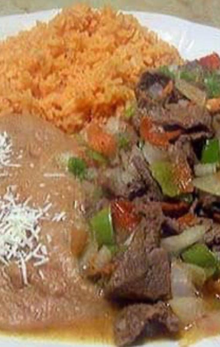Acompañado de arroz, frijoles , salsa y tortillas.