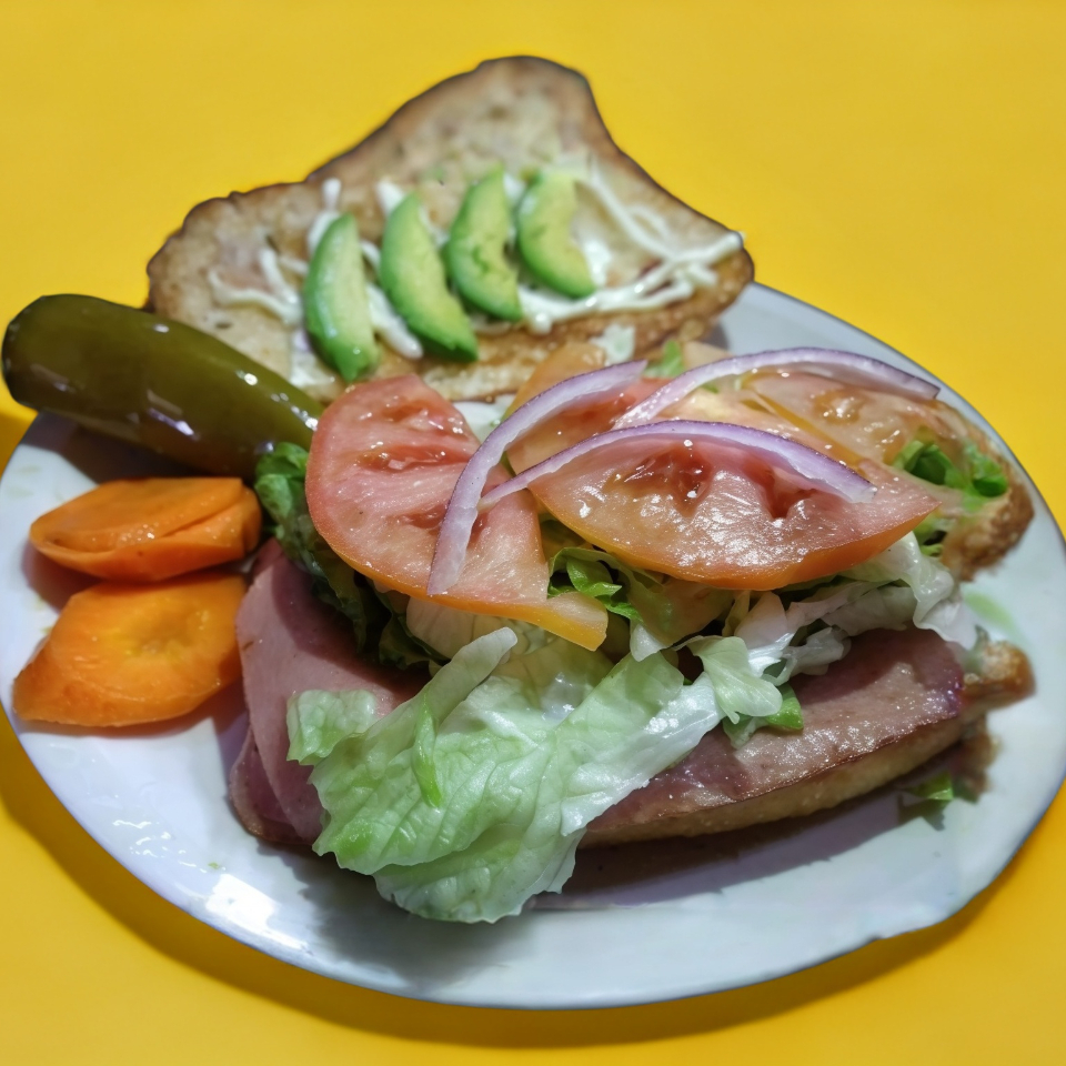 Acompañado de papas, lechuga, tomate y aguacate, salsa y tortillas