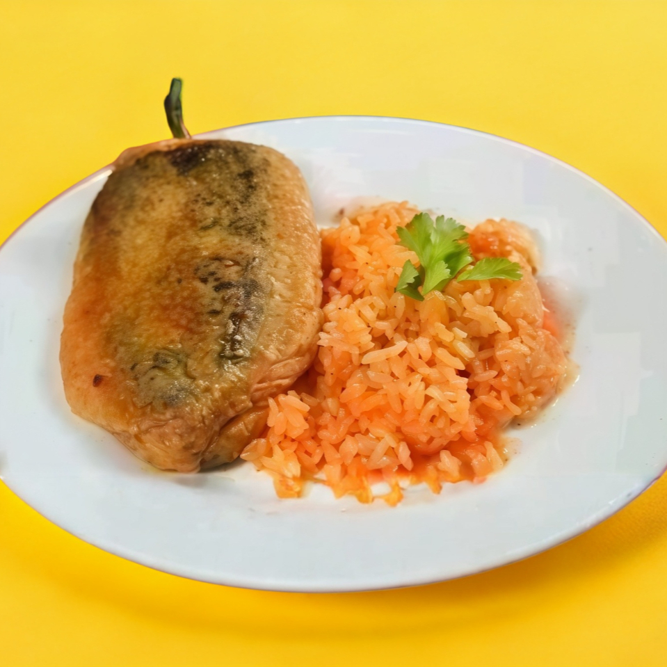 5 chiles grandes c/arroz, frijoles y tortillas.