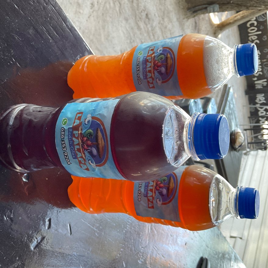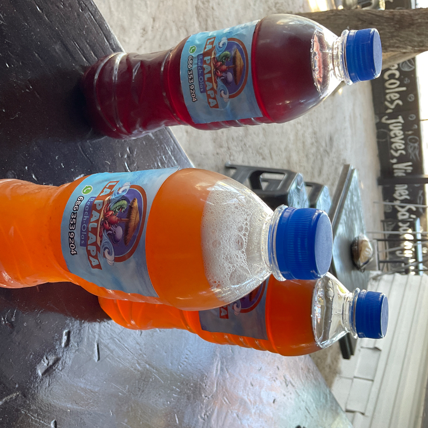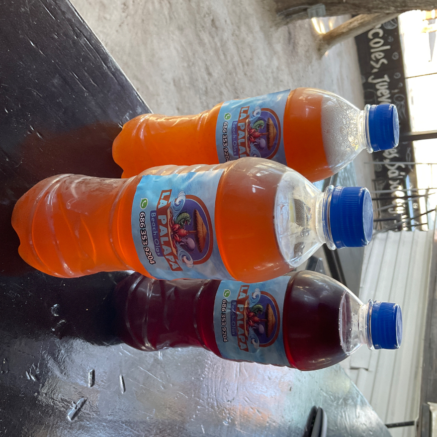 Camarón a elección, pepino, tomate, cebolla morada, cilantro, aguacate y jugos de la casa