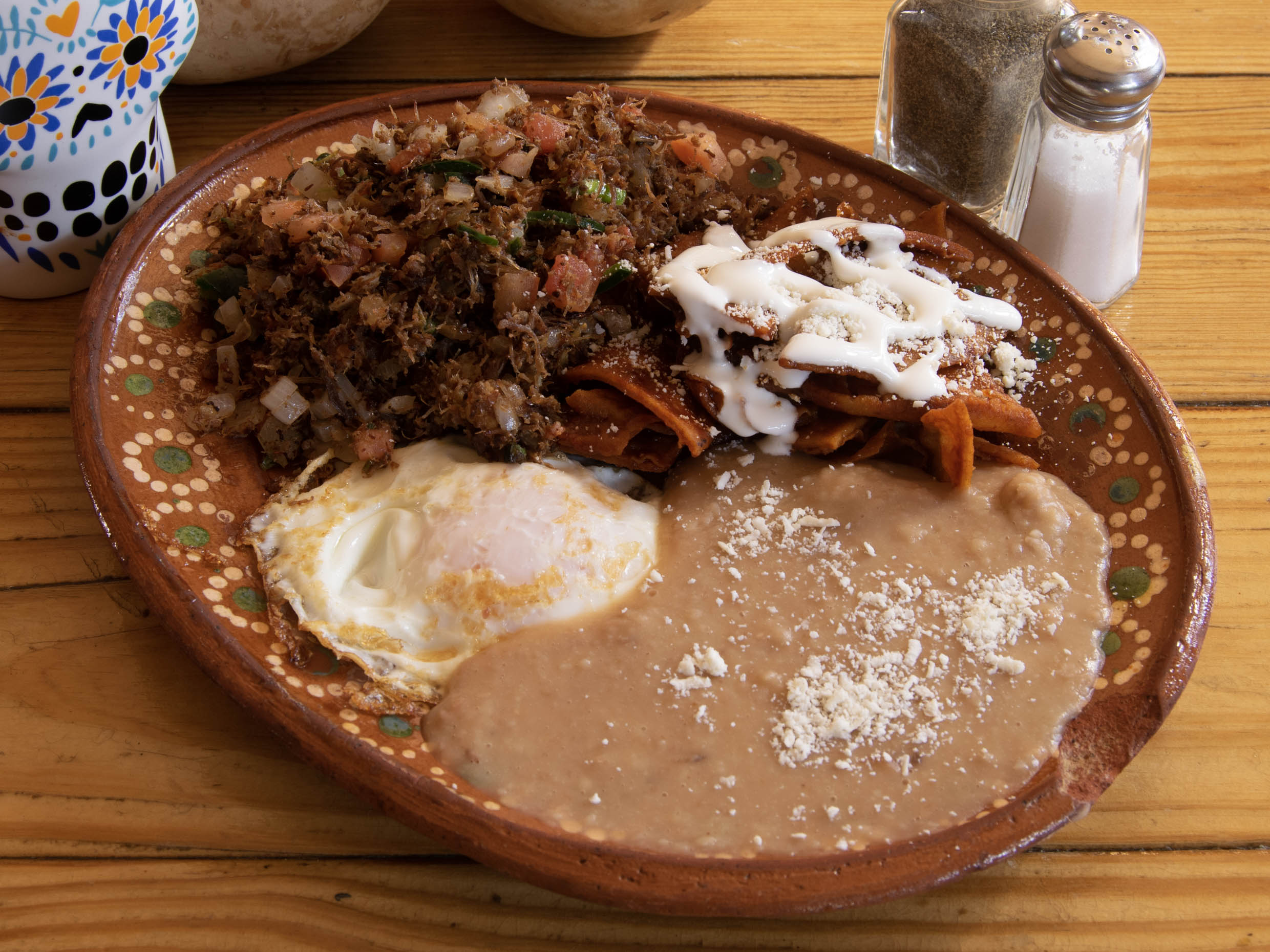 Colache. Acompañado de chilaquiles, un huevo y frijol con queso.