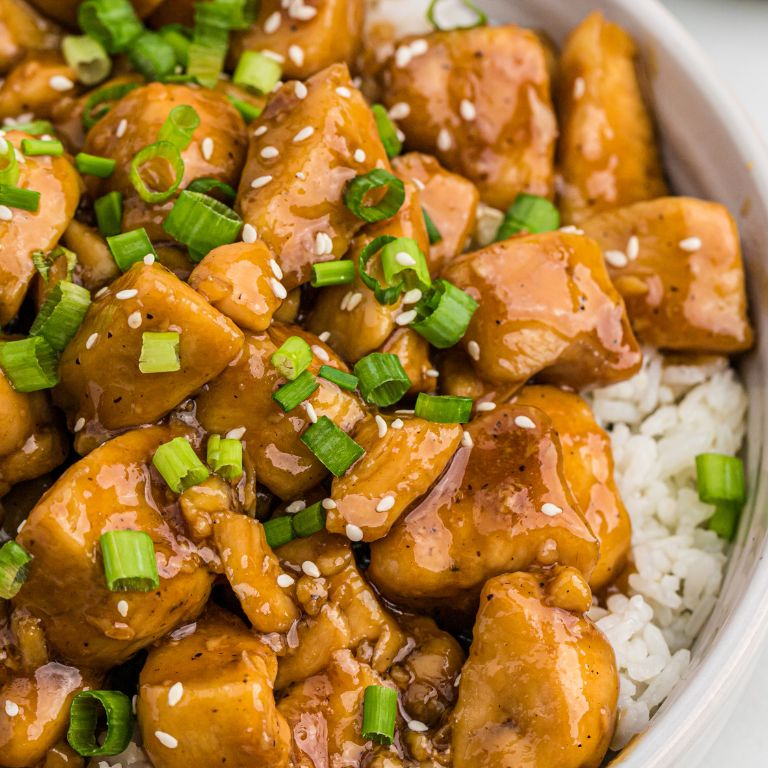 CAMA DE ARROZ BLANCO CON POLLO EN SALSA TERIYAKI SIN VERDURA