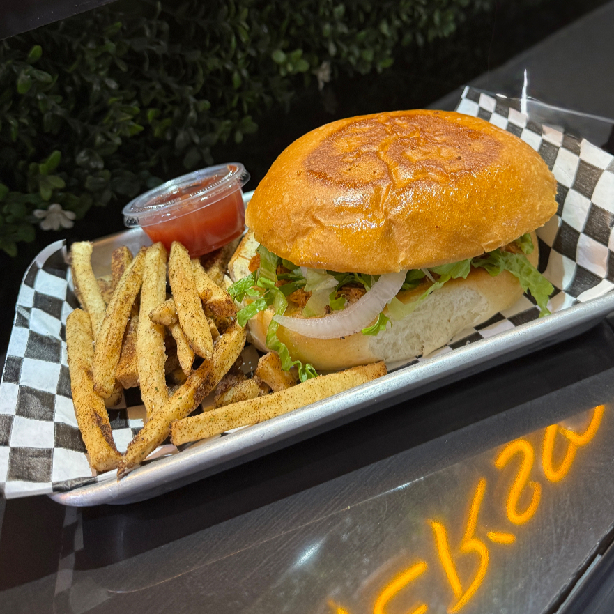 Pan brioche con aderezo de la casa, cama de lechuga, 150g de boneless con salsa de tu gusto, bañados en ranch.
