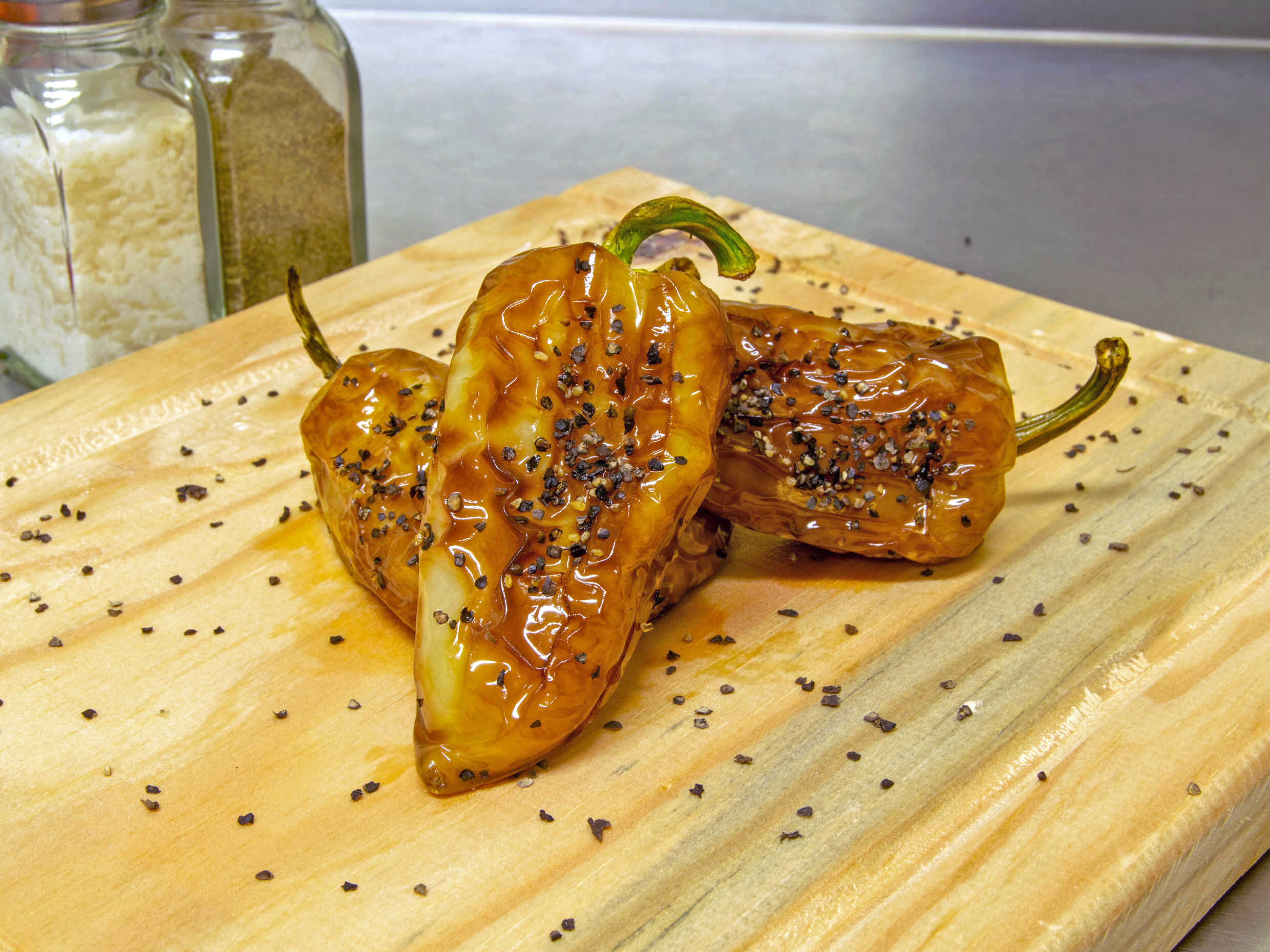 Orden de 4 chiles güeritos con sal, pimienta y salsa de soya.