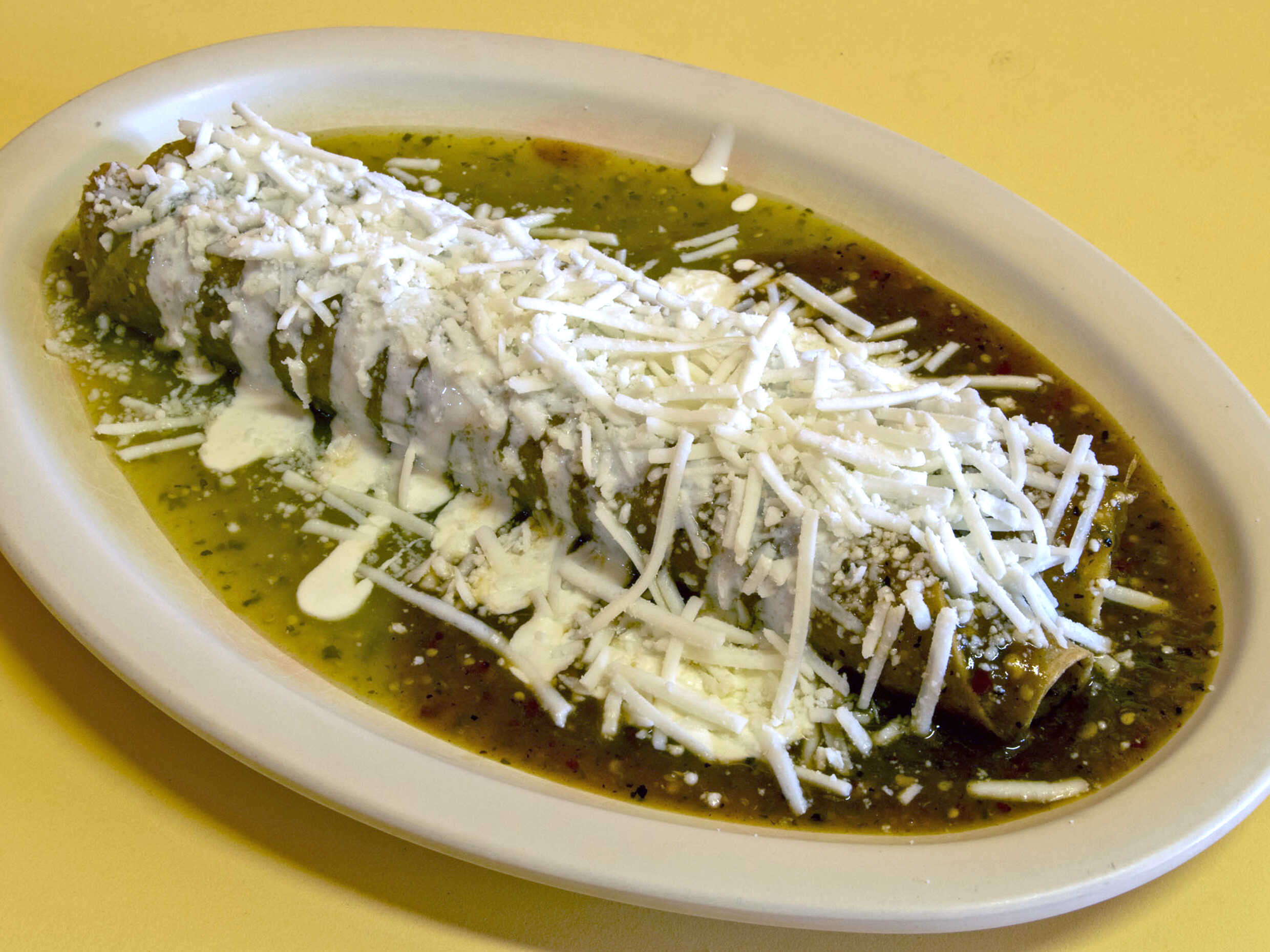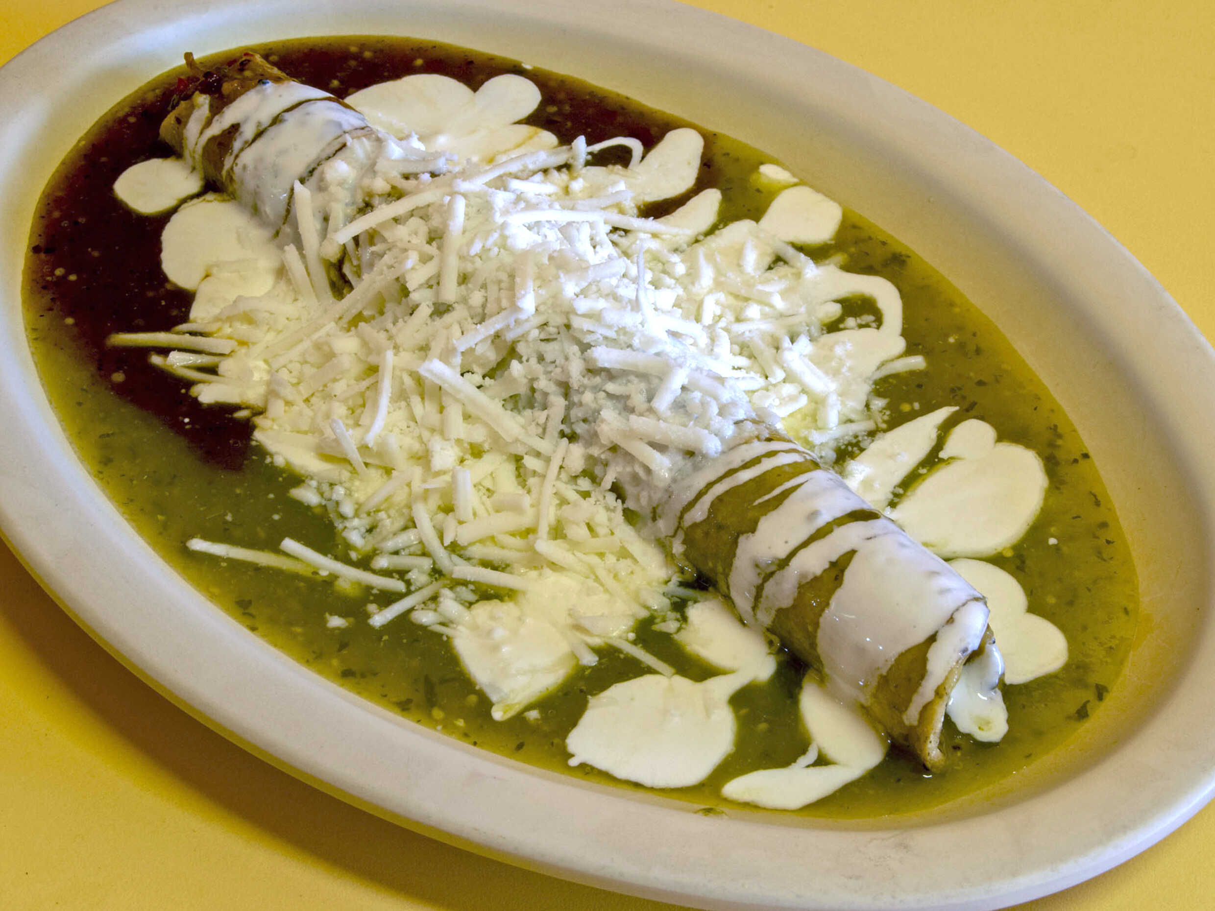 Salsa verde,salsa roja,queso y crema.