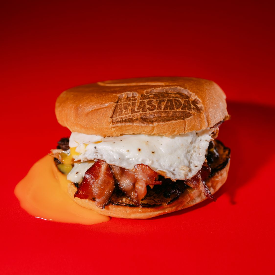 APLASTADA CON QUESO COLBY JACK, CEBOLLA CARAMELIZADA, TOCINO Y HUEVO ESTRELLADO