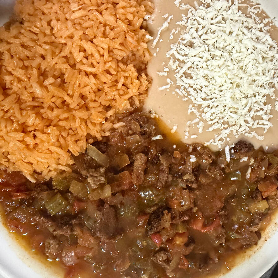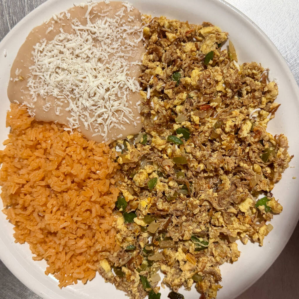 Chile, tomate, cebolla y huevo (arroz y frijol)