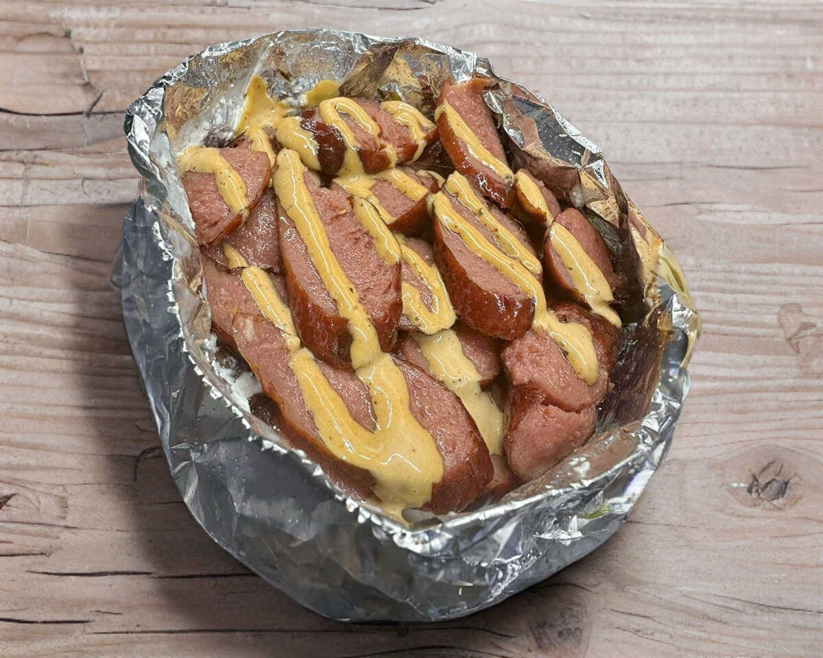 La base de todas acompanada de una deliciosa salchicha polaca y los toppings de tu preferencia.