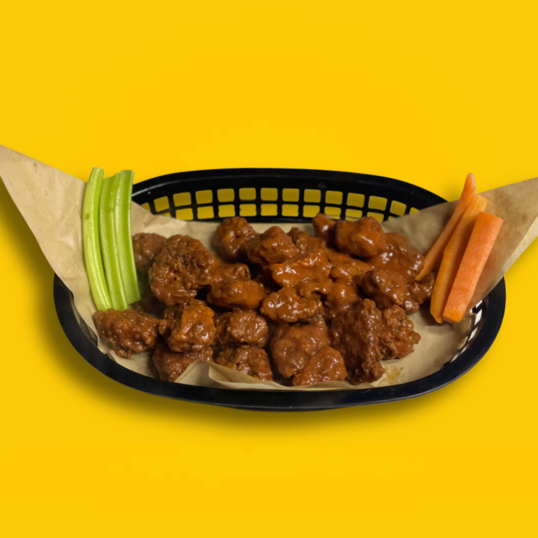 200gr de Boneless (salsa a elegir), acompañados de papas sazonadas,bastones de Zanahoria y Apio