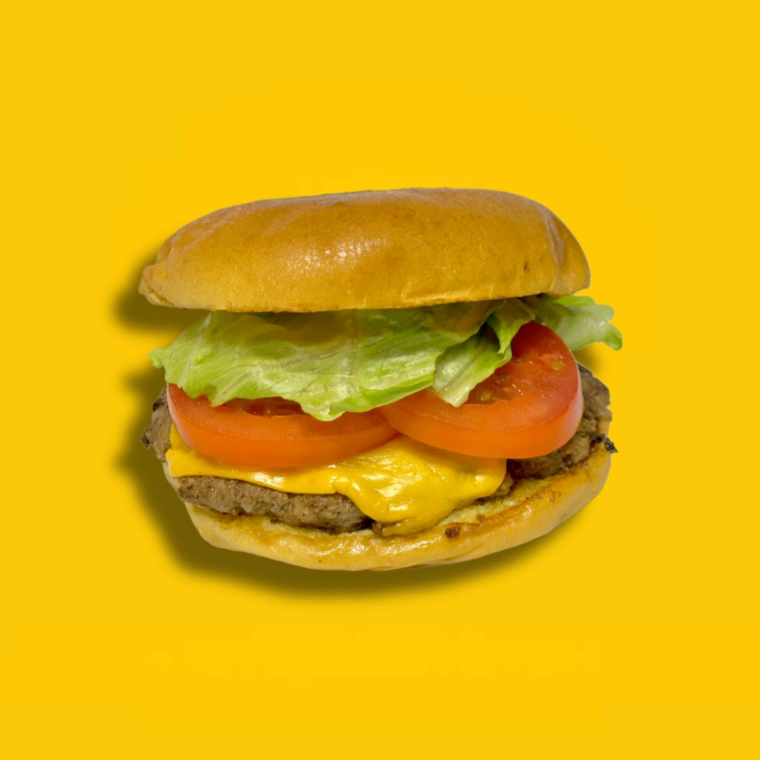 Hamburguesa de Carne, Lechuga, Tomate, Queso Amarillo o Suizo.