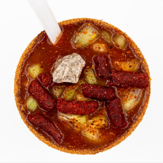 Pepino, chaca chaca, salado y clamato sazonado de la